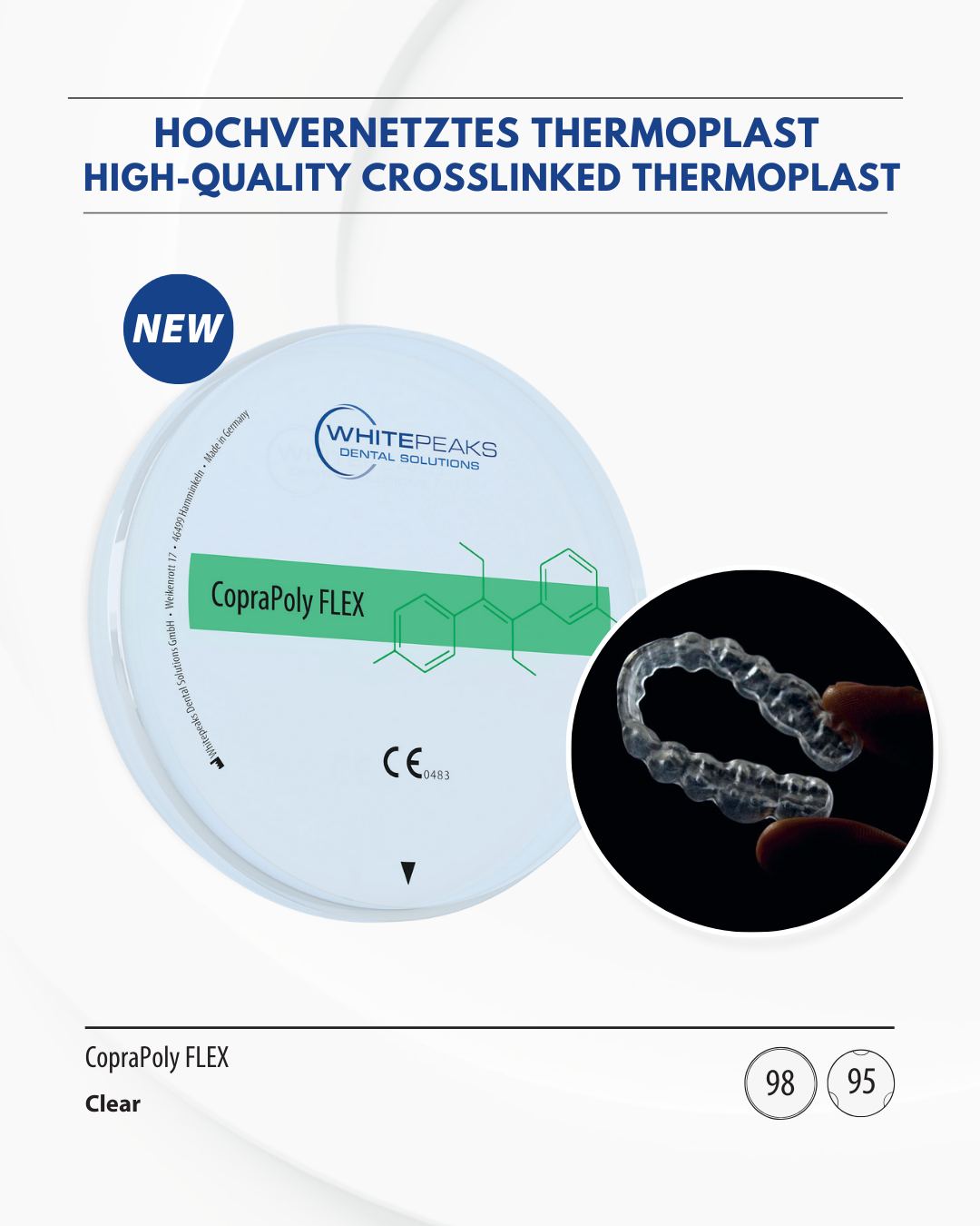 Gute Polierbarkeit samt höchster Flexibilität ermöglicht die Herstellung von glasklaren Aufbissschienen.