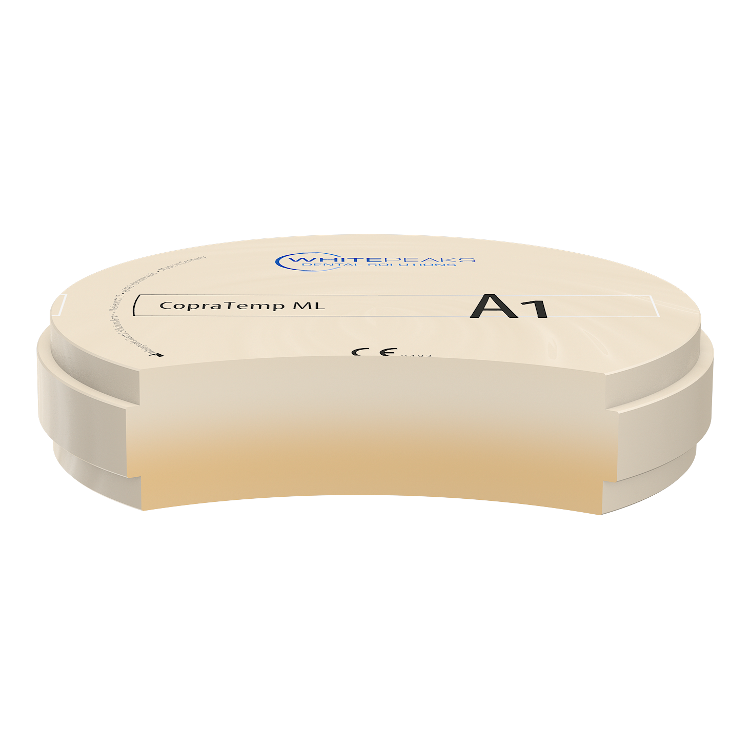 CopraTemp ML ist extrem plaqueresistent und kann mit Kunststoffen und Compositen verblendet und individualisiert werden. Durch die verschiedenen Schichten wird ein extrem natürlicher Farbverlauf für wundervoll lebendige und natürlich wirkende Restaurationen erreicht.