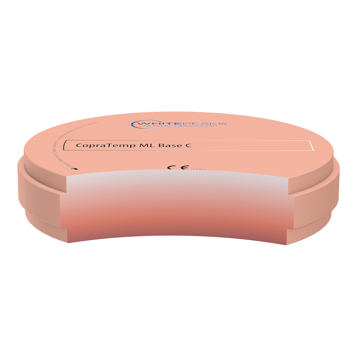 CopraTemp ML Base C ist die ideale Wahl für die digitale Fertigung von Voll- und Teilprothesen. Der hellere Schichtanteil im interdentalen Bereich sorgt für eine naturgetreue Nachbildung der Papillen und unterstützt eine ästhetische Gesamtwirkung. Das Material überzeugt durch hervorragende Polierbarkeit sowie eine hochfeste Verbindung mit Prothesenzähnen und Kaltpolymerisaten (PMMA) – für langlebige und qualitativ hochwertige Prothesenbasen.